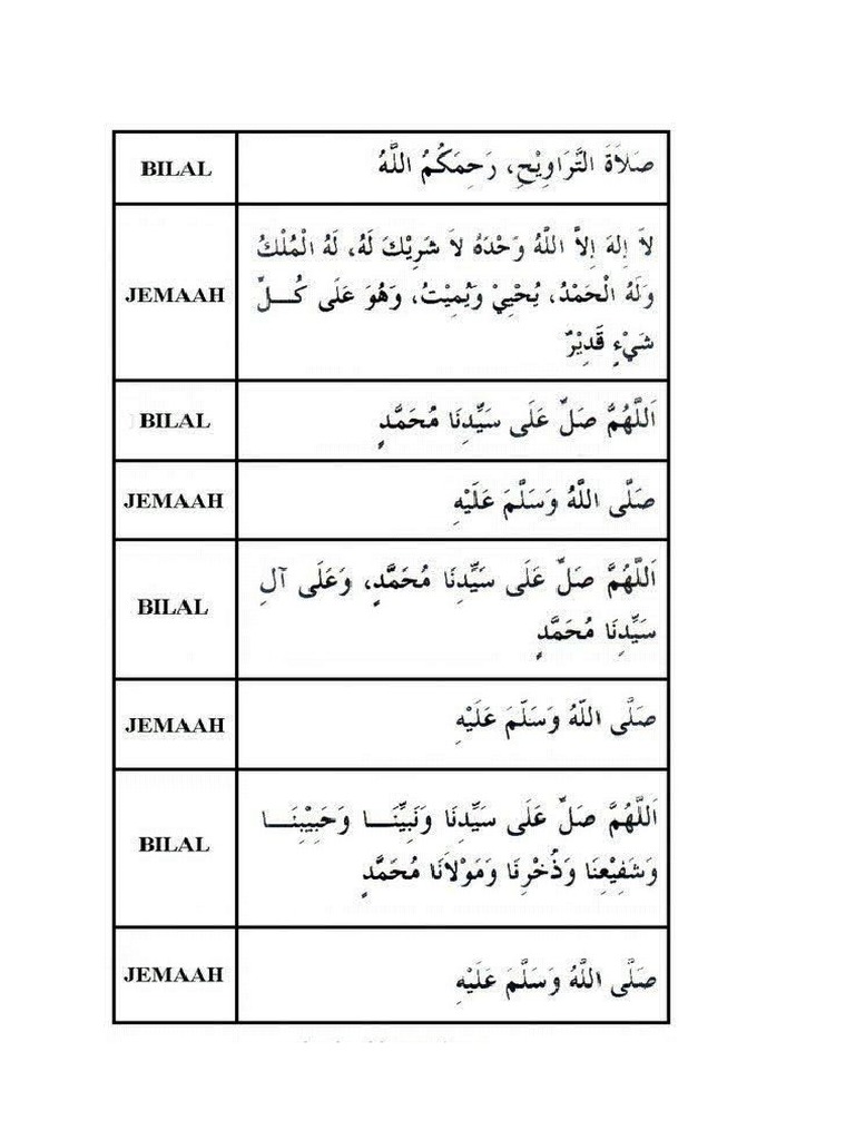 (aku bersaksi bahwa tiada tuhan yang disembah melainkan allah). Tarawih dalam bahasa arab yaitut bentuk jama' dari تَرْوِيْحَةٌ yang diartikan sebagai waktu sesaat untuk istirahat. 100%(2)100% found this document useful (2 votes). Sholat tarawih adalah sholat sunnah yang dilakukan hanya pada saat malam hari di bulan ramadhan. 1.selepas solat sunat witir dibaca tahlil pendek.bacaan dimulai dengan ucapan di bawah sebanyak dua kali